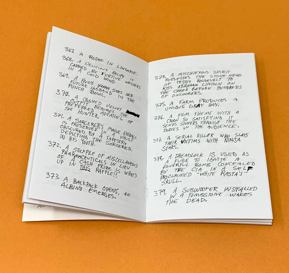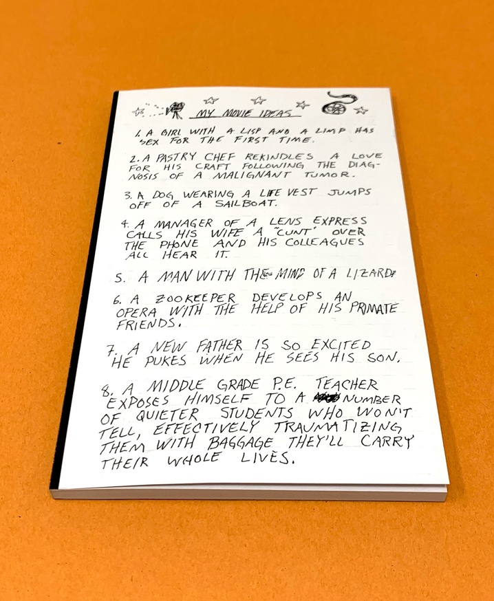 "My Movie Ideas," is a catalog of nearly 1,000 film concepts culled from the exhaustively long running zine series of the same name by Clark Allen.